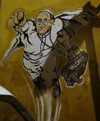 罗马街头日前出现"超人教宗"涂鸦作品,有人形容教宗与超人都各自为真理和公义"打永无终止的仗"。梵蒂冈官方推特分享这张照片表示对其创意的肯定。